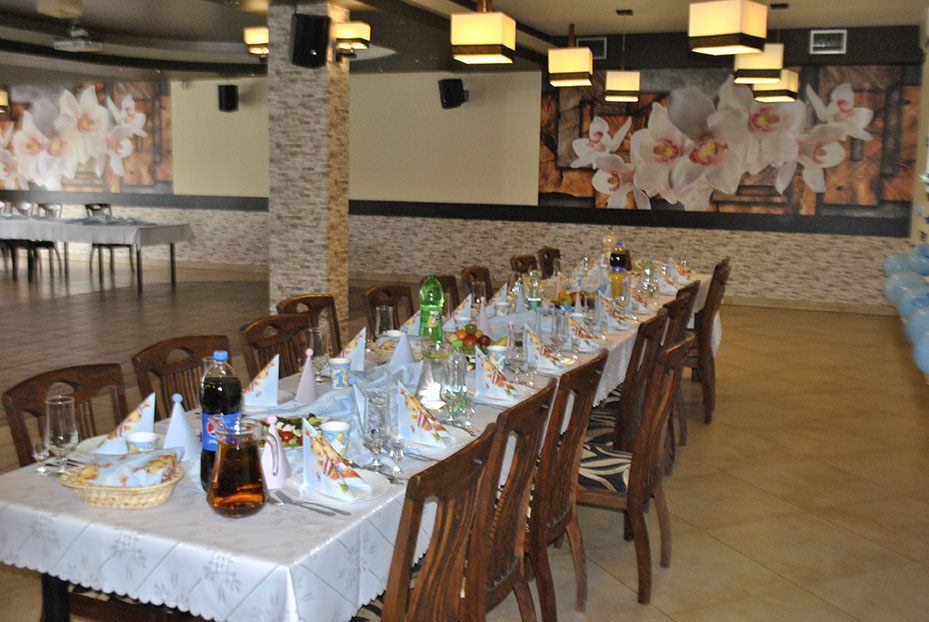 Oddajemy do Państwa dyspozycji nowy lokal restauracyjny, w którym Państwo wraz ze swymi gośćmi będziecie świetnie bawić się podczas różnego rodzaju imprez okolicznościowych. Dysponujemy salą bankietowo - konferencyjną na 120 osób. Nasza sala bankietowa poznała już liczne imprezy: huczne wesela, uroczyste komunie i chrzciny, eleganckie bankiety firmowe, szalone bale sylwestrowe oraz bale karnawałowe. Bardzo komfortowe warunki naszej restauracji sprawiają, że goście długo będą wspominali Państwa przyjęcie.